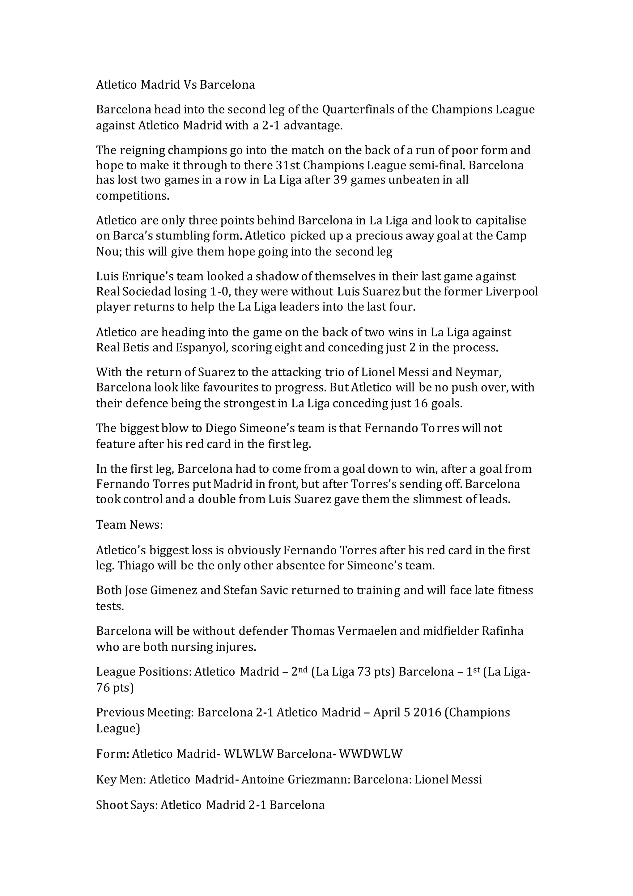 The matchup between Atletico Madrid and Barcelona continues to capture the hearts of football fans worldwide. As both teams prepare for their next matches, this latest encounter adds another exciting chapter to their storied rivalry. Fans and pundits alike will be closely watching to see how each team responds in the weeks to come, as the pressure mounts in La Liga.